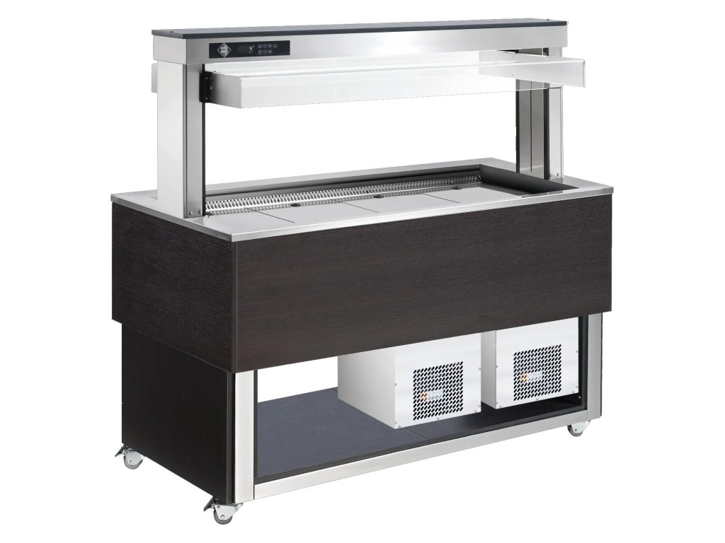 rozmer: 1169x760x1488mm(šxhxv); príkon elektro: 0,25kW/230V; kapacita: 3 x GN1/1 - 150mm; chladenie: ventilované; prev. teplota: +4/+8°C; elektronická riadiaca jednotka; prevedenie: hemlock, wenge,; RAL za príplatok +10%; 4 kolieska, 4 brzdené; nerezová vaňa; podstavba: krytovaná z bokov so spodnou policou; nadstavba: pevná s odkladacou policou; elektrické spúšťanie a zdvíhanie zákrytu; max. teplota/vlhkosť okolia +25°C / 60%R.H.; príslušenstvo na objednávku:; -bočné manipulačné plochy ; -prídavné vstavané skrinky; -gastronádoby; -falošné dno vane nerez 532x326mm/GN1/1Diskusia