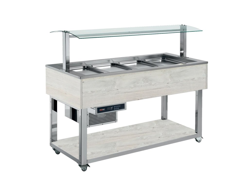 rozmer: 1494x650x1288mm(šxhxv); príkon elektro: 0,25kW/230V; kapacita: 4 x GN1/1 - 200mm; chladenie: statické; prev. teplota: +4/+8°C; elektronická riadiaca jednotka; prevedenie: hemlock; RAL za príplatok +5%; 4 kolieska, 4 brzdené; nerezová vaňa; podstavba: otvorená so spodnou policou; nadstavba: sklená; LED osvetlenie; max. teplota/vlhkosť okolia +25°C / 60%R.H.; príslušenstvo na objednávku:; -bočné manipulačné plochy ; -prídavné vstavané skrinky; -gastronádobyDiskusia