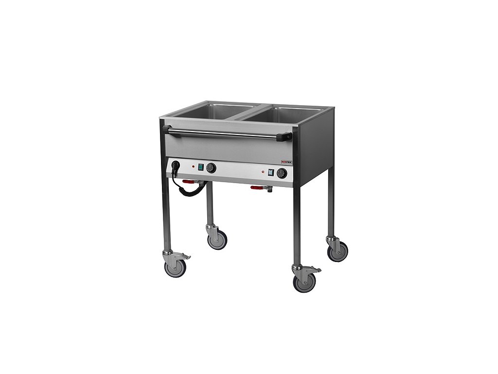 rozmer: 850x700x900mm(šxhxv); príkon elektro: 1,4kW/230V; kapacita: 2 x GN1/1 - 200mm; regulácia teploty: 30-90°C; ovládanie na dlhšej strane; samost. ovládanie každej vane; 2 x výpustný ventil; 4 kolieska, 2 brzdené; príslušenstvo na objednávku: ; -gastronádobyDiskusia