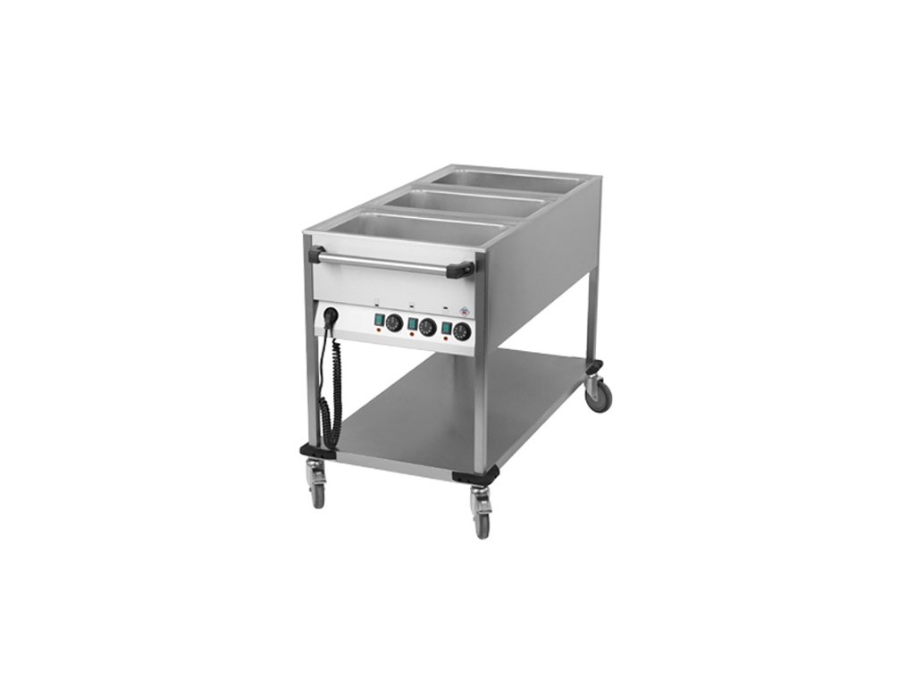 rozmer: 1308x649x900mm(šxhxv); príkon elektro: 2,1kW/230V; kapacita: 3 x GN1/1 - 200mm; regulácia teploty: 30-90°C; ovládanie na kratšej strane; samost. ovládanie každej vane; 3 x výpustný ventil; polica; 4 kolieska, 2 brzdené; príslušenstvo na objednávku: ; -gastronádobyDiskusia