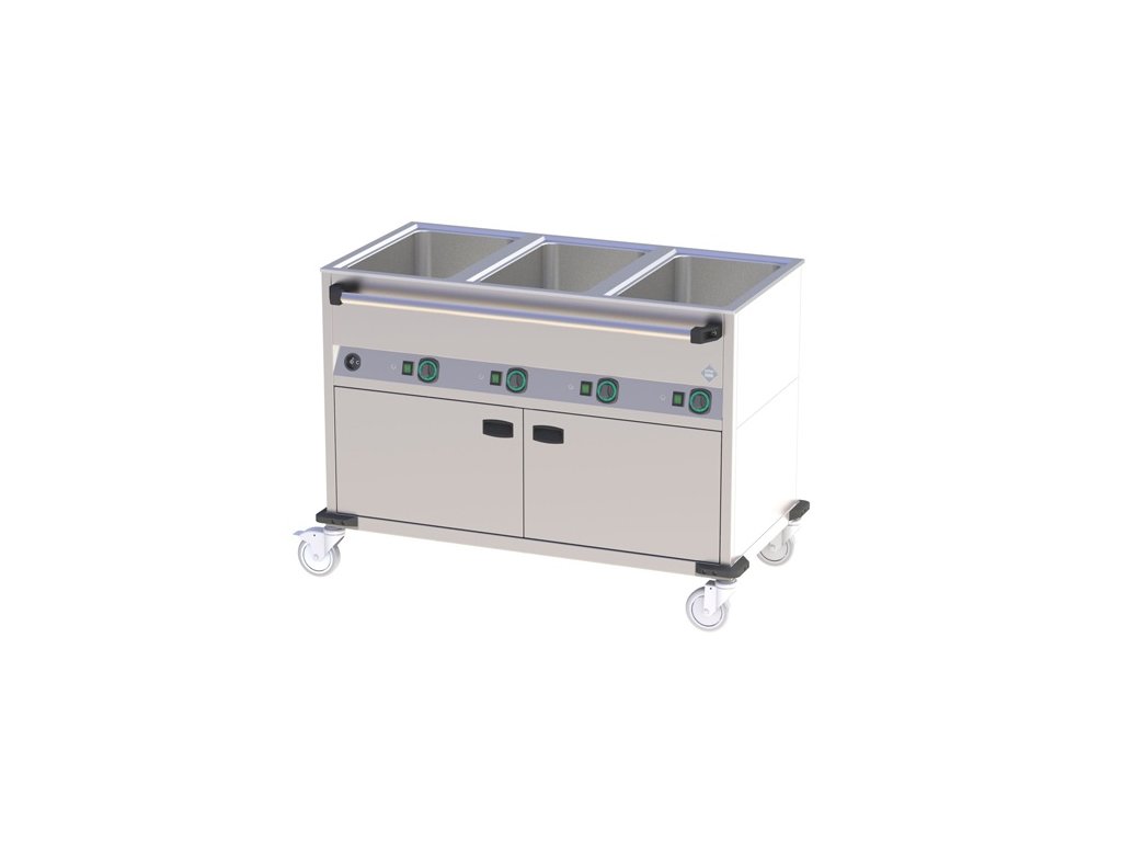 rozmer: 1250x700x900mm(šxhxv); príkon elektro: 2,9kW/230V; kapacita: 3 x GN1/1 - 200mm; vyhrievaná dvojplášť. podstavba so zásuvmi na GN; (3 polia po 4 zásovoch GN1/1-65) ; regulácia teploty: 30-90°C; ovládanie na dlhšej strane; samost. ovládanie každej vane + podstavby; 3 x výpustný ventil do podstavby; 4 kolieska, 2 brzdené; príslušenstvo na objednávku: ; -gastronádobyDiskusia